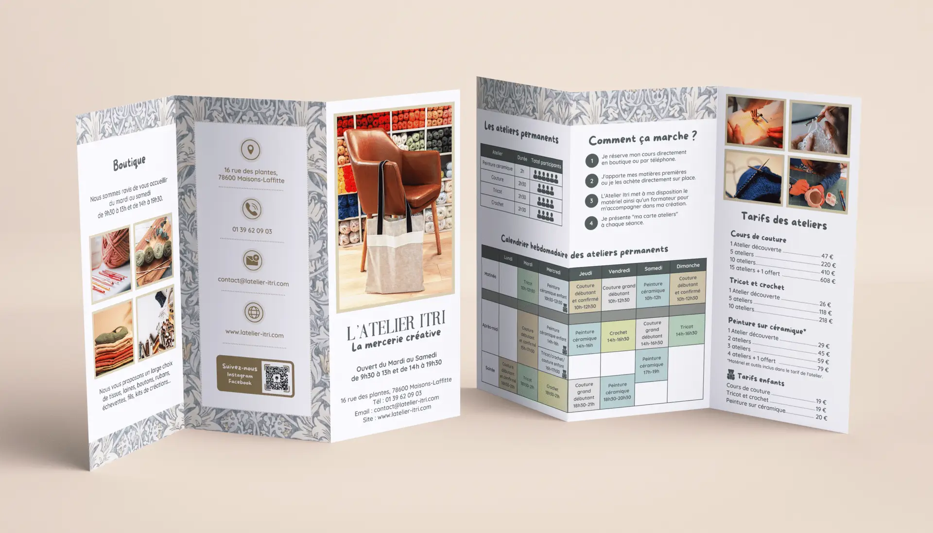 Dans un univers artisanal, le support imprimé permet de créer un lien tangible avec la marque. Il valorise le savoir-faire, apporte de la crédibilité et participe à l’expérience client en boutique. Pour L’Atelier Itri, les supports imprimés transmettent l’univers créatif. Ils participent activement à la fidélisation de la clientèle.