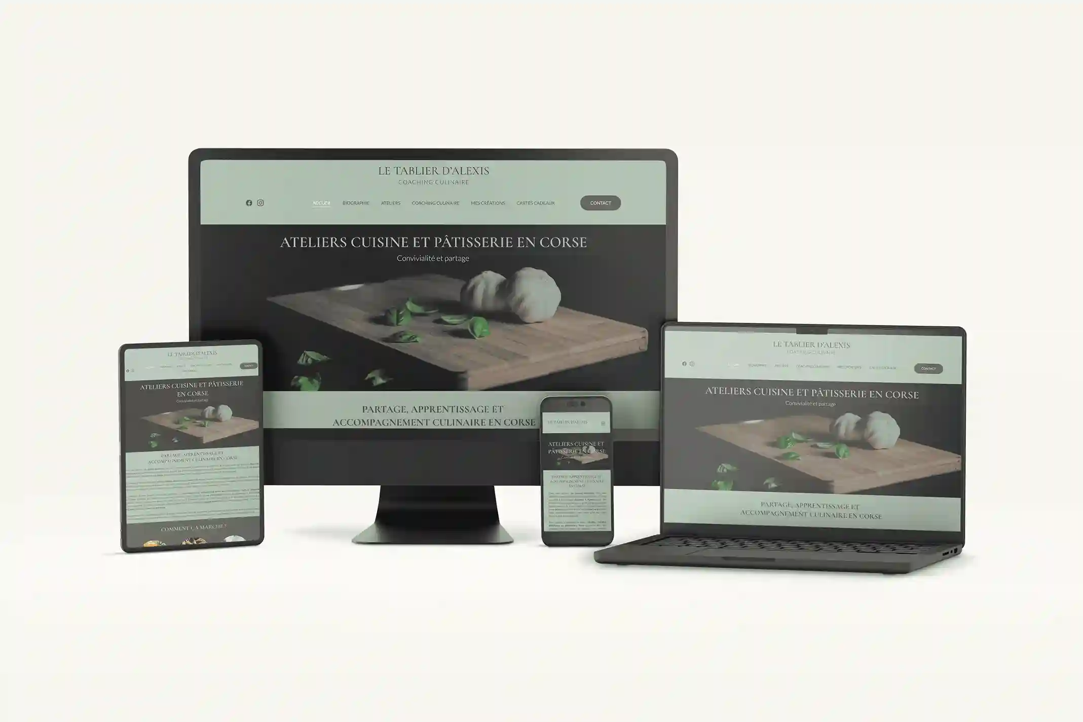 Le Tablier d’Alexis propose des ateliers de cuisine à Ajaccio. Palmity a accompagné Alexis dans la création complète de son univers de marque. L’accompagnement a inclus l’identité visuelle, le site internet vitrine et les réseaux sociaux.